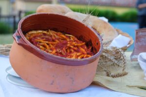 The queen of Lucanian cuisine, it is not a simple omelette, but a rich and complex baked pasta dish, fragrant and enveloping. Traditionally, the pasta, prepared with local eggs and flour, made its triumphant entrance on Shrove Tuesday evening, topped with cheese, horseradish and sauce, and was the star of the rituals that diners did not shy away from: observing the shadow of one’s head by turning around after the third forkful, turning one’s chair towards the fire in the fireplace and leaving one’s shadow to its fate, amid the hilarious “cosecoselle” to be listened to and guessed rather than told. Even today, every family prepares it with care, keeping a centuries-old tradition alive.